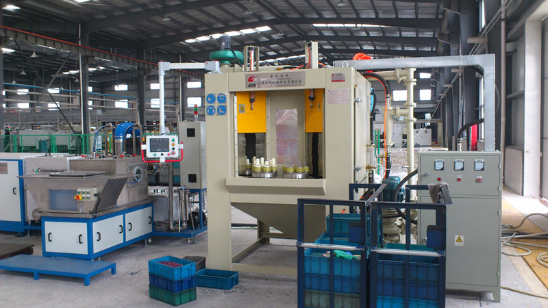 蝸輪軸是高端汽車傳動(dòng)部門的主要零部件,由于高強(qiáng)度的要求,蝸輪軸需要經(jīng)過熱處理加工,經(jīng)過熱處理加工之后,表面產(chǎn)生一層氧化層,濕式噴砂機(jī)就是目前清理的最優(yōu)質(zhì)方案。 本設(shè)備是根據(jù)我公司針對(duì)蝸輪軸類產(chǎn)品和處理要求而專門設(shè)計(jì)的全自動(dòng)轉(zhuǎn)盤式濕式噴砂機(jī),完全適合貴公司所提供的產(chǎn)品要求。根據(jù)貴公司對(duì)產(chǎn)品質(zhì)量及效率的要求,本機(jī)共設(shè)置8個(gè)工件裝夾位。大轉(zhuǎn)盤每轉(zhuǎn)動(dòng)2個(gè)工位一停,噴砂艙內(nèi)共布置8支普壓高速噴砂槍,在噴砂區(qū)共設(shè)置2個(gè)工位做為噴砂加工位,即有2個(gè)工件在進(jìn)行噴砂加工,布置8支噴砂槍對(duì)工件需噴砂部位噴砂加工。噴槍可根據(jù)加工需要,隨意調(diào)整其噴射角度,并配有噴槍組前后距離調(diào)節(jié)機(jī)構(gòu),采用PLC程序化控制,配觸摸屏操控面板,自動(dòng)化程度非常高。 該機(jī)由主機(jī)、收砂器、水霧分離器、溢流沉淀箱、手動(dòng)砂水檢測(cè)器、空氣壓縮系統(tǒng)(客戶自備)、電氣系統(tǒng)等組成。本機(jī)共配置8支普壓高速噴砂槍,加工靈活方便實(shí)用;